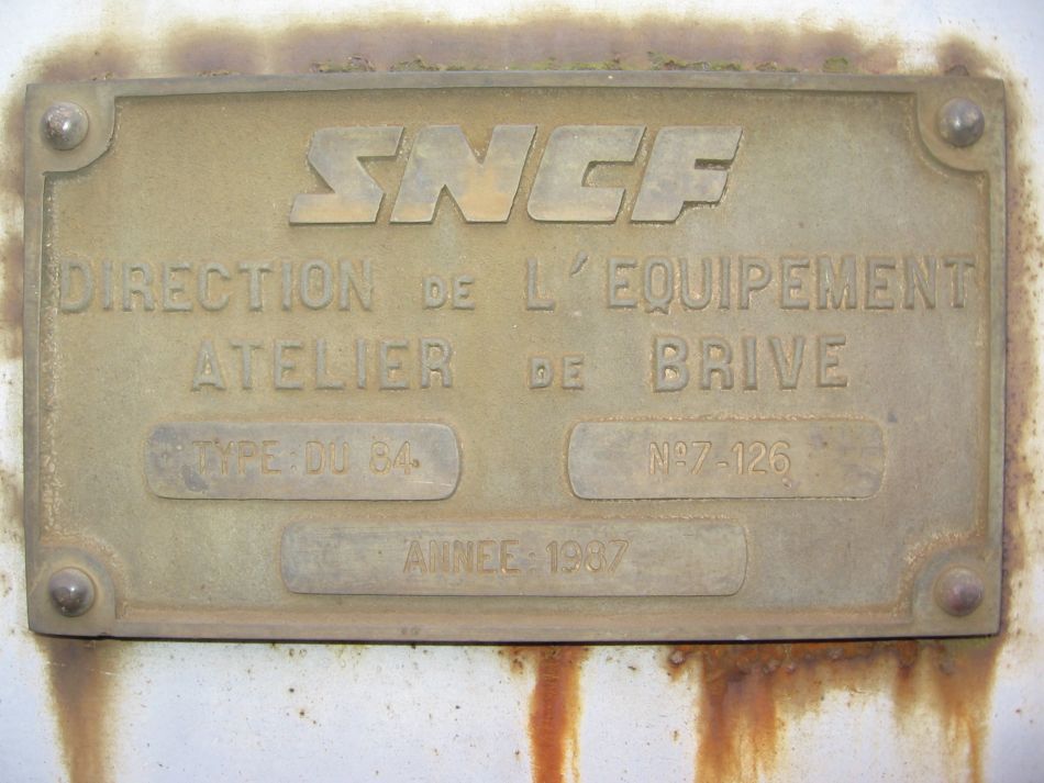 Voici le n° UIC de la Draisine DU 84 9 = 99 87 9 285 226-6 ex 7.126 SNCF-TR