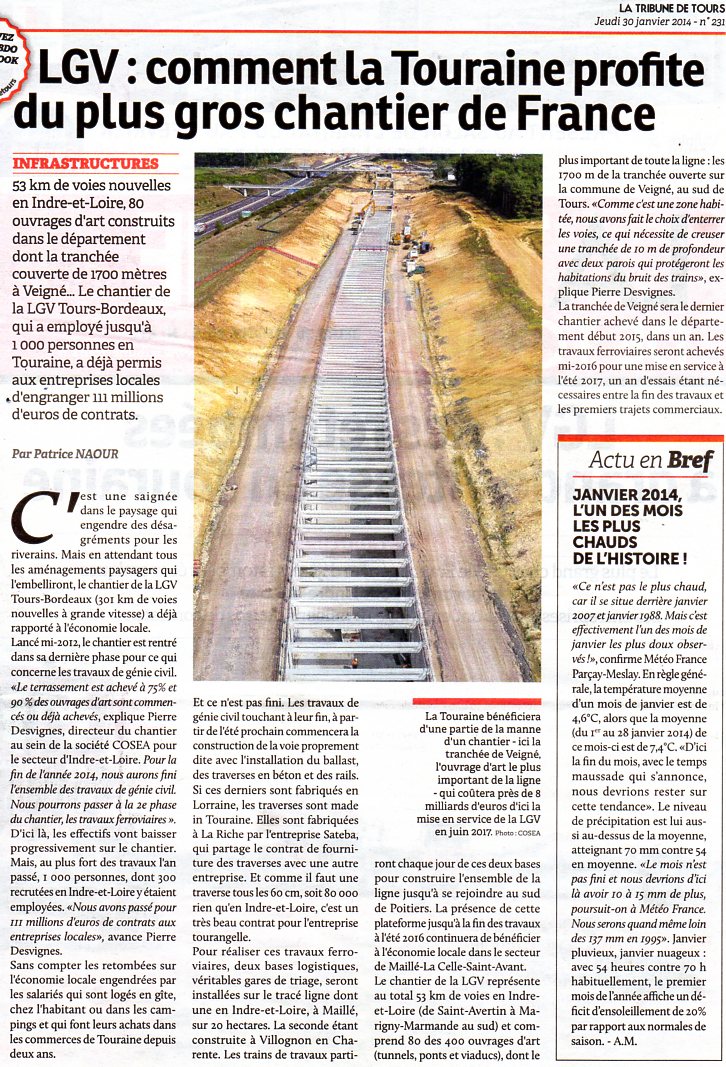 Voici un article de la Nouvelle République de Tours du samedi 29 mars 2014 sur la LGV Tours Bordeaux