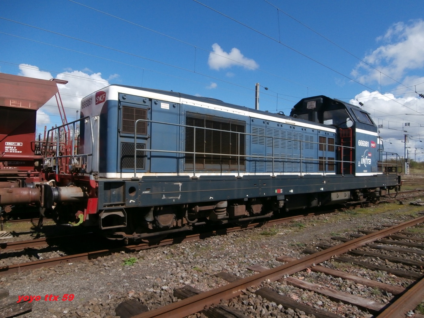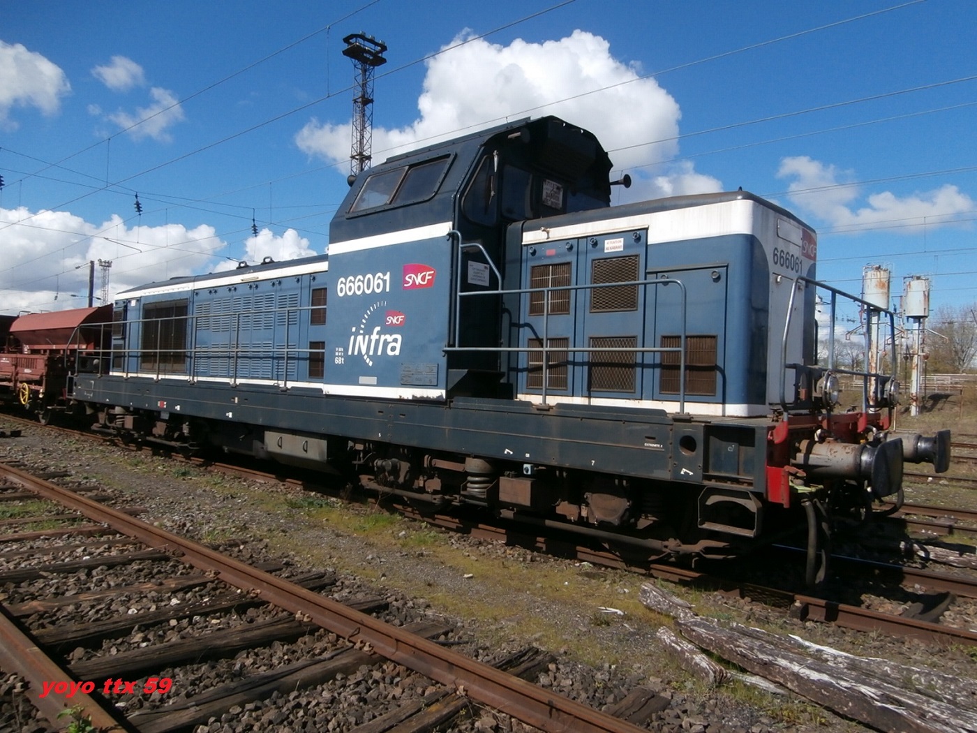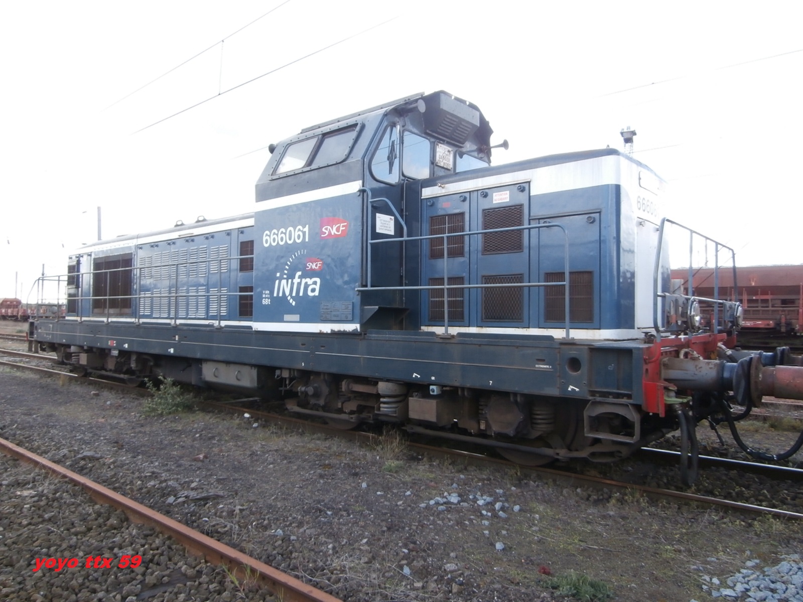 Pour info voici la 666061 avec la 669201 et une rame de Trémies sur la zone de garage des rames Infra