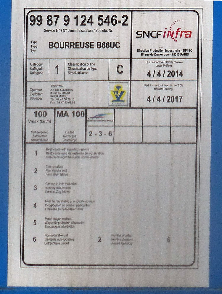 Voici une info du 16-01-2015 des ateliers de Matisa France à Sens (89) sur la 66 UC LGV avec son numéro du