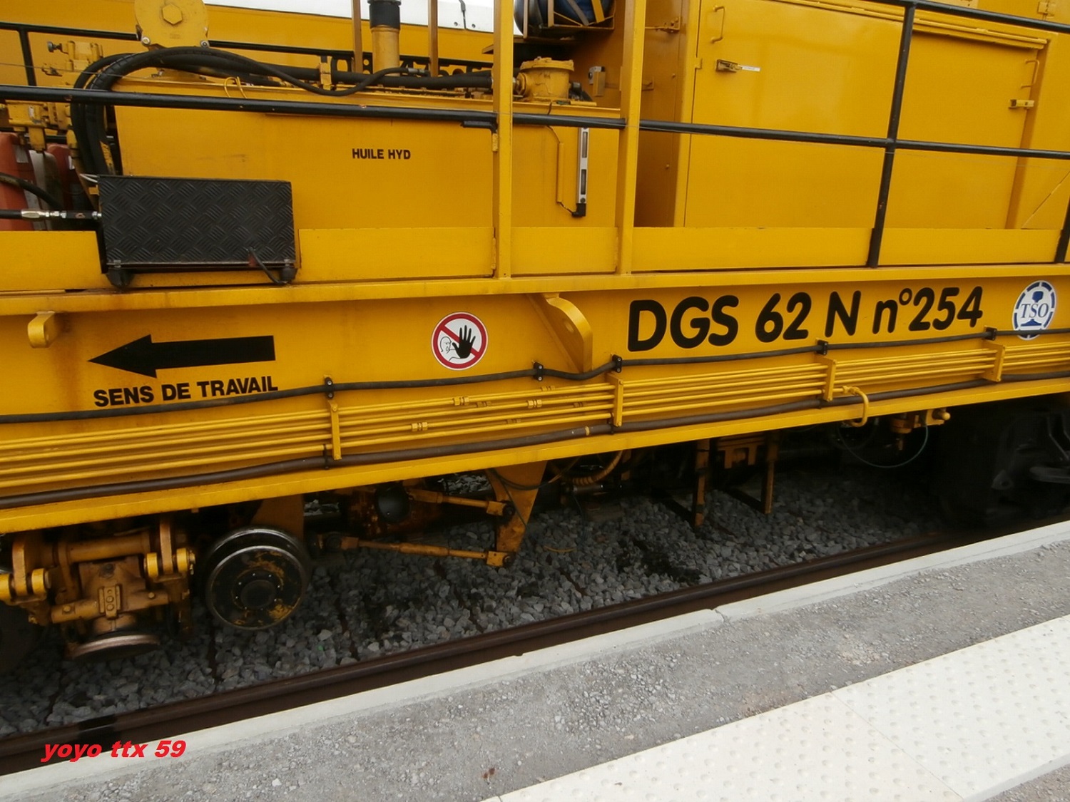 Après les détails du wagon que voici :Place maintenant aux détails de la DGS 62 N .C'est partie :Photos prisent a Gravelines le 17/08/2014 sur le chantier de la ligne Dunkerque / Calais .A suivre :
