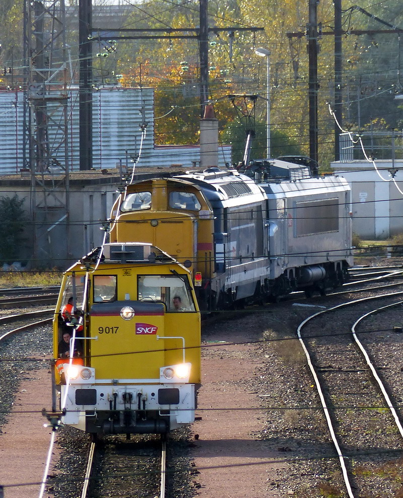 Voici le locotracteur Y 9017 avec la V211R N°192 0 - 99 87 9 182 501-6 Vecchietti ''Erika" sur la zone de garage des rames INFRA/SNCF
