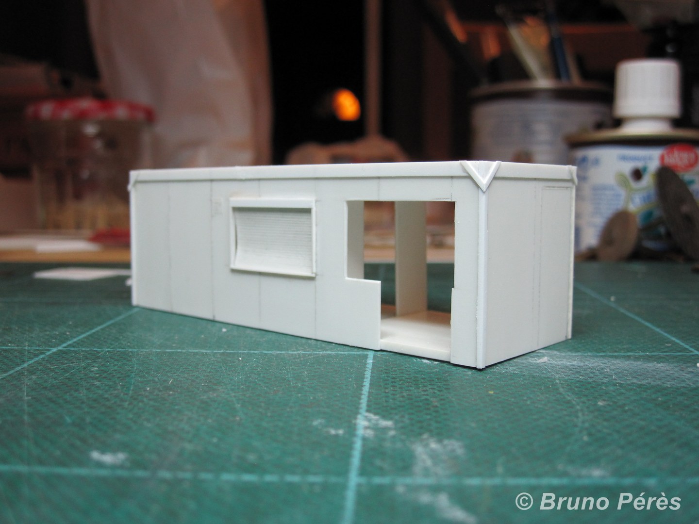 Voici le bricolage du jour. Il reste encore quelques ponçages à effectuer pour affiner les renforts obliques de l'ossature métallique, ainsi que quelques détails à ajouter avant peinture, mais on n'est pas loin du modèle fini ! Bien entendu, il faudra également ajouter les petits détails qui font vrai à l'intérieur.