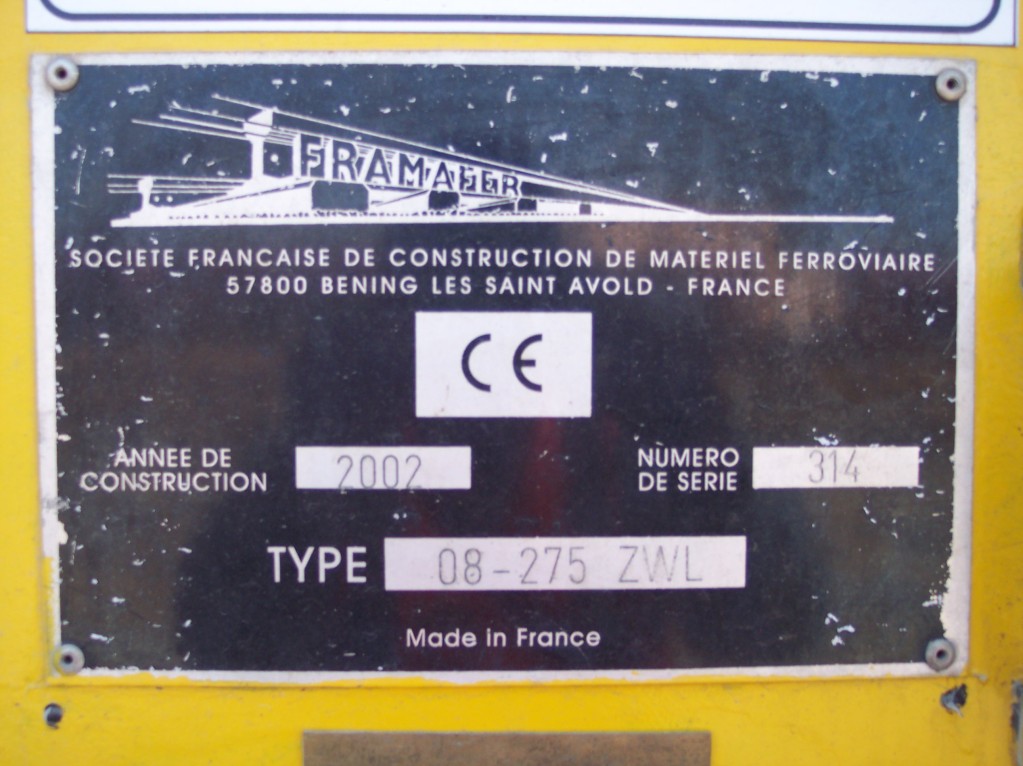 pour une expertise de l'engins 08-275 ZWL de Framafer n°314 - 2002 ETF Agence du Luxembourg 5200326