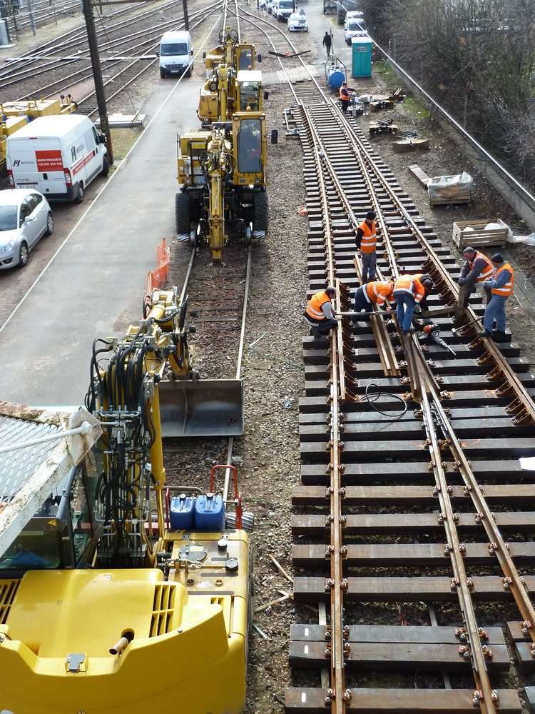 et le Chenillards à ridelles et à moteur Honda GX avec une Tirefonneuse Geismar de l'équipe Infrapôle centre UP voie de Tours le 26-02-2015