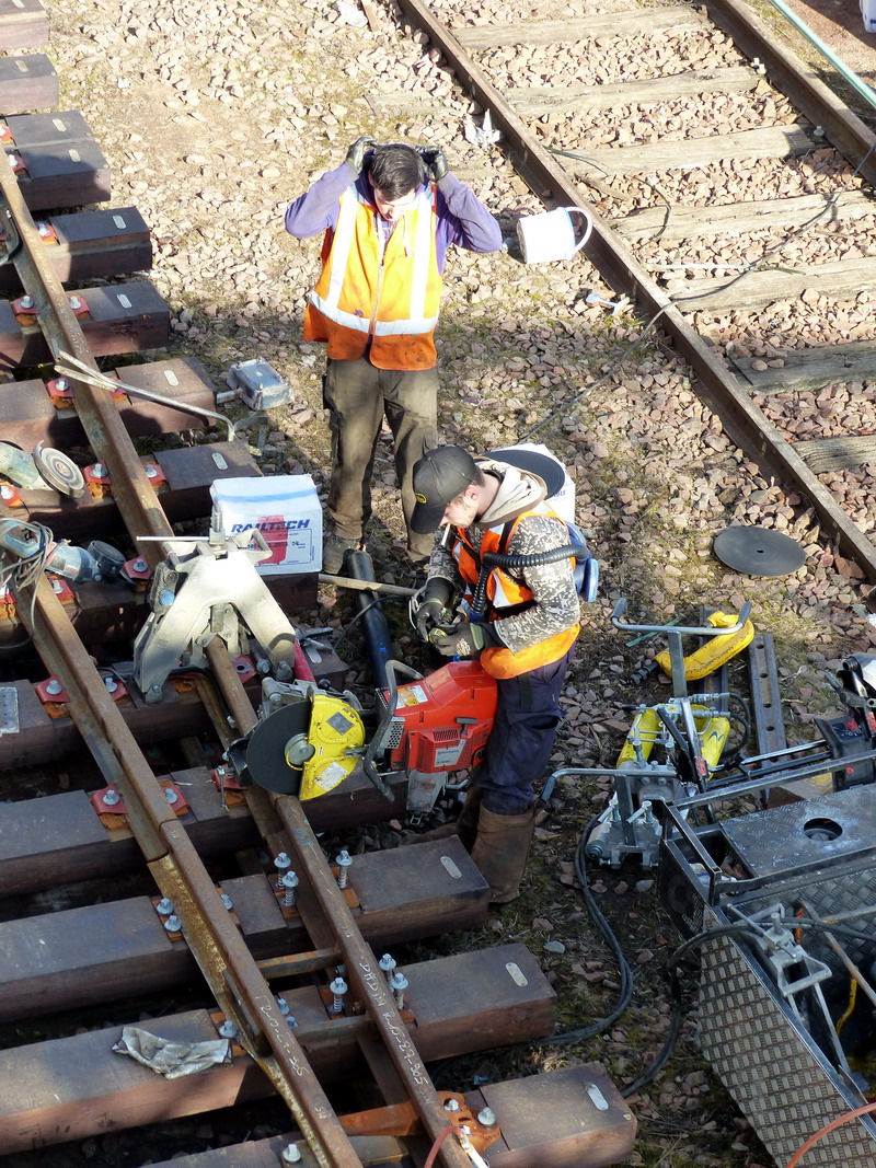 Vendredi 06-03-2015 séance de découpe avec une tronçonneuse RAILTECH sur l'aiguillage 5