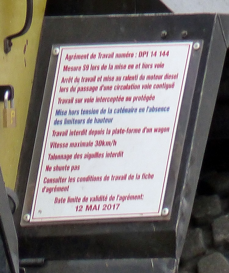 Voici quelques photos du MC 130 SNCF-TR Infralog du Centre avec son agrément DPI 14144 - 12-05-2017