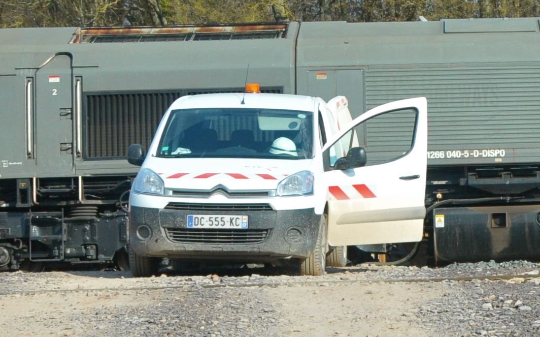 Voici un Trafic Renault Dci 115 qui arrive du Luxembourg pour Bidon V de SPDC pour la livraison d'un Bourroir ROBEL (Bourreuse