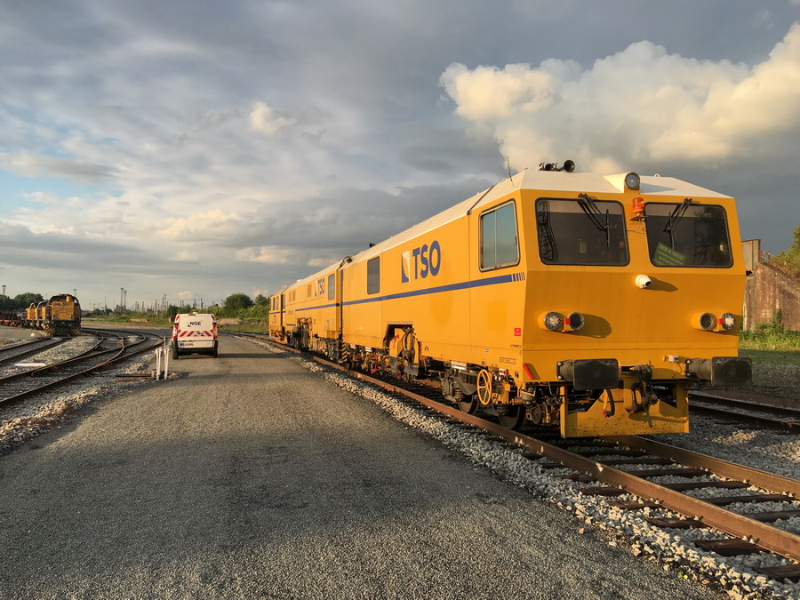Photo de Guillaume Moncomble sur le site de la base arrière pour les travaux sur la LGV Nord à Lille Délivrance avec la Bourreuse de ligne