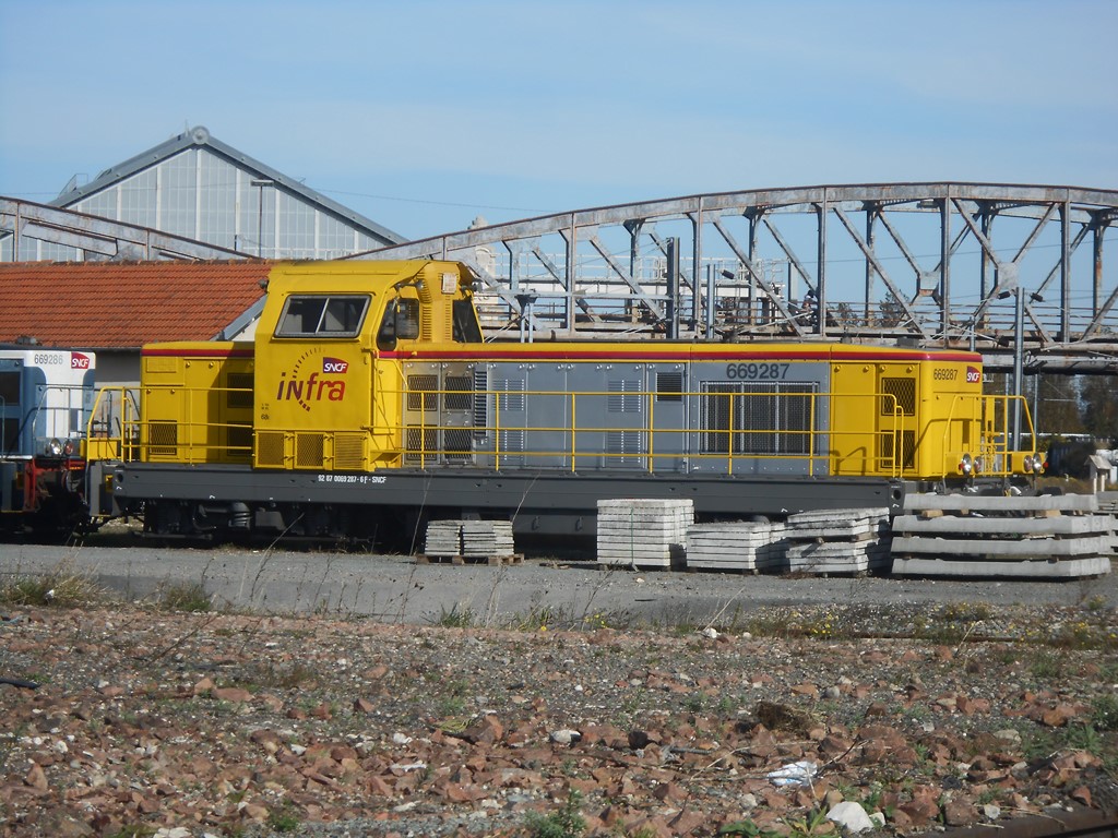 Voici une nouvelle en livrée Infra jaune la 669287 (ex 66287 mise en service le 29-05-1967) 92 87 0069 287-6 F-SNCF