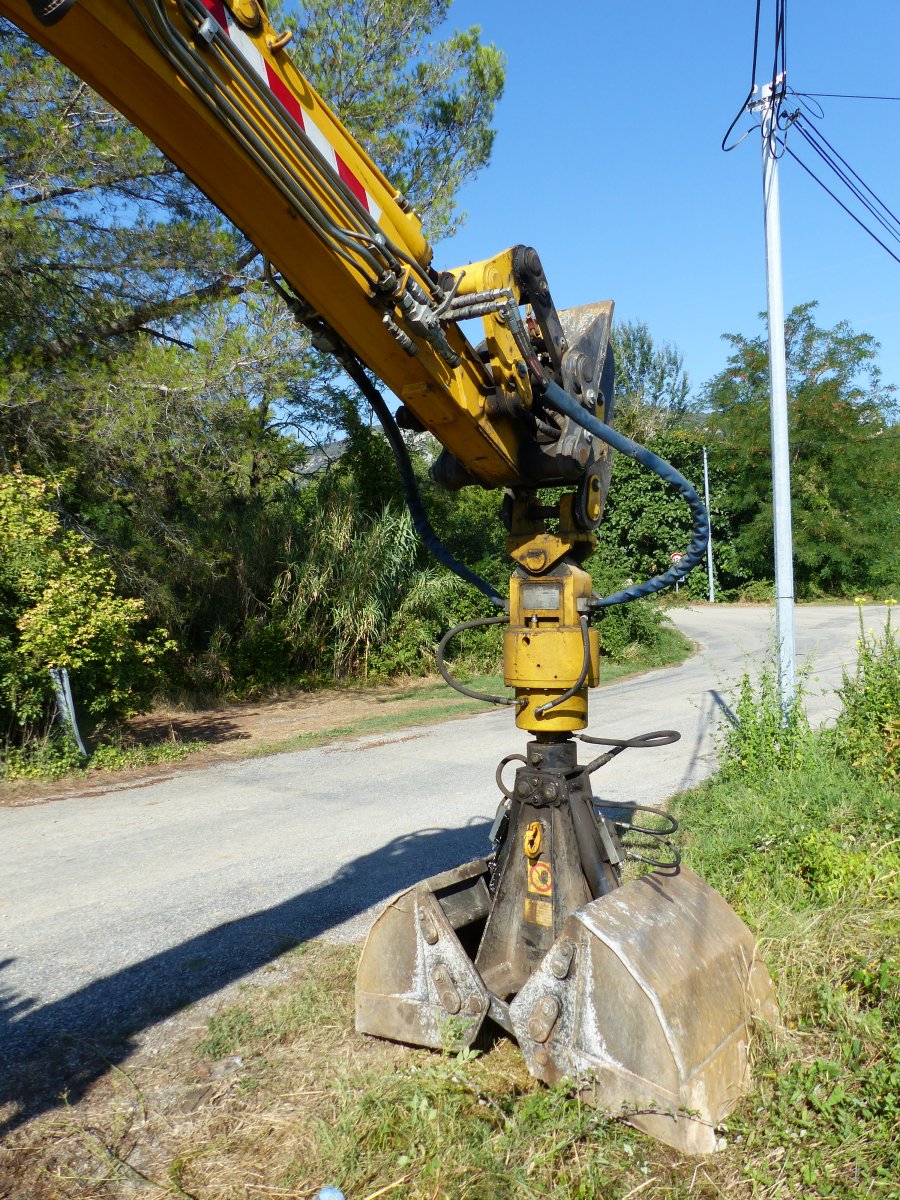 J'ai eu l'occasion d'observer cette pelle hydraulique sur le chantier de remplacement du pont-rail sur le Largue