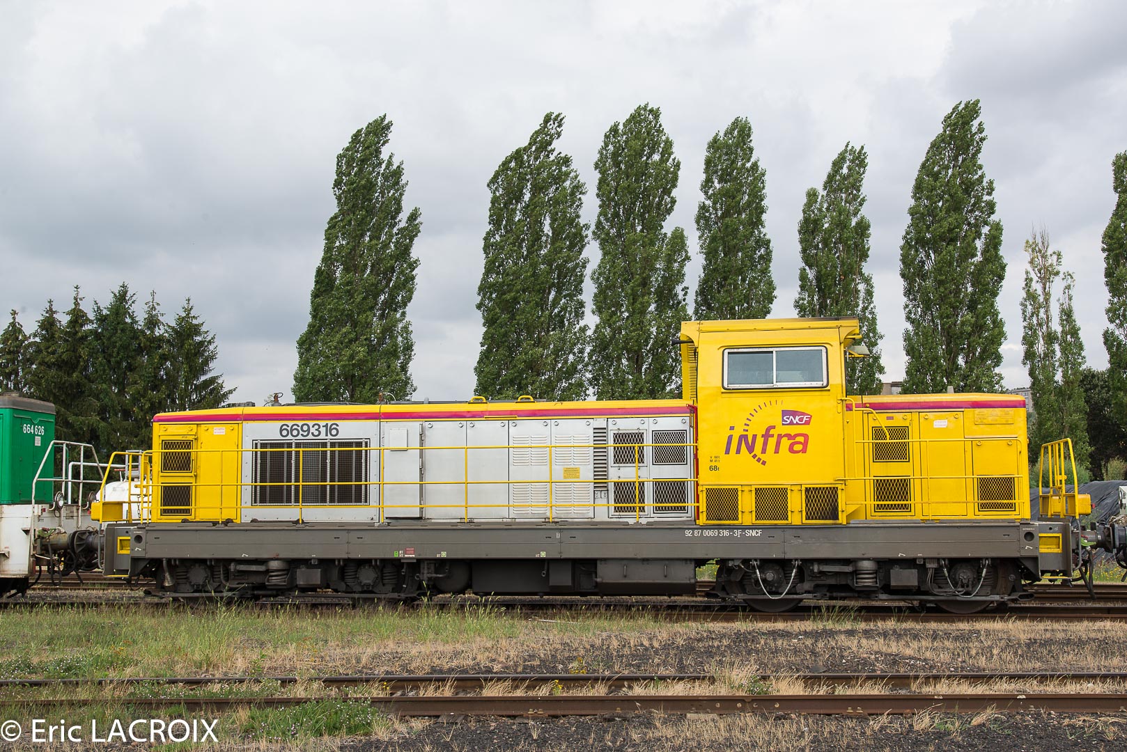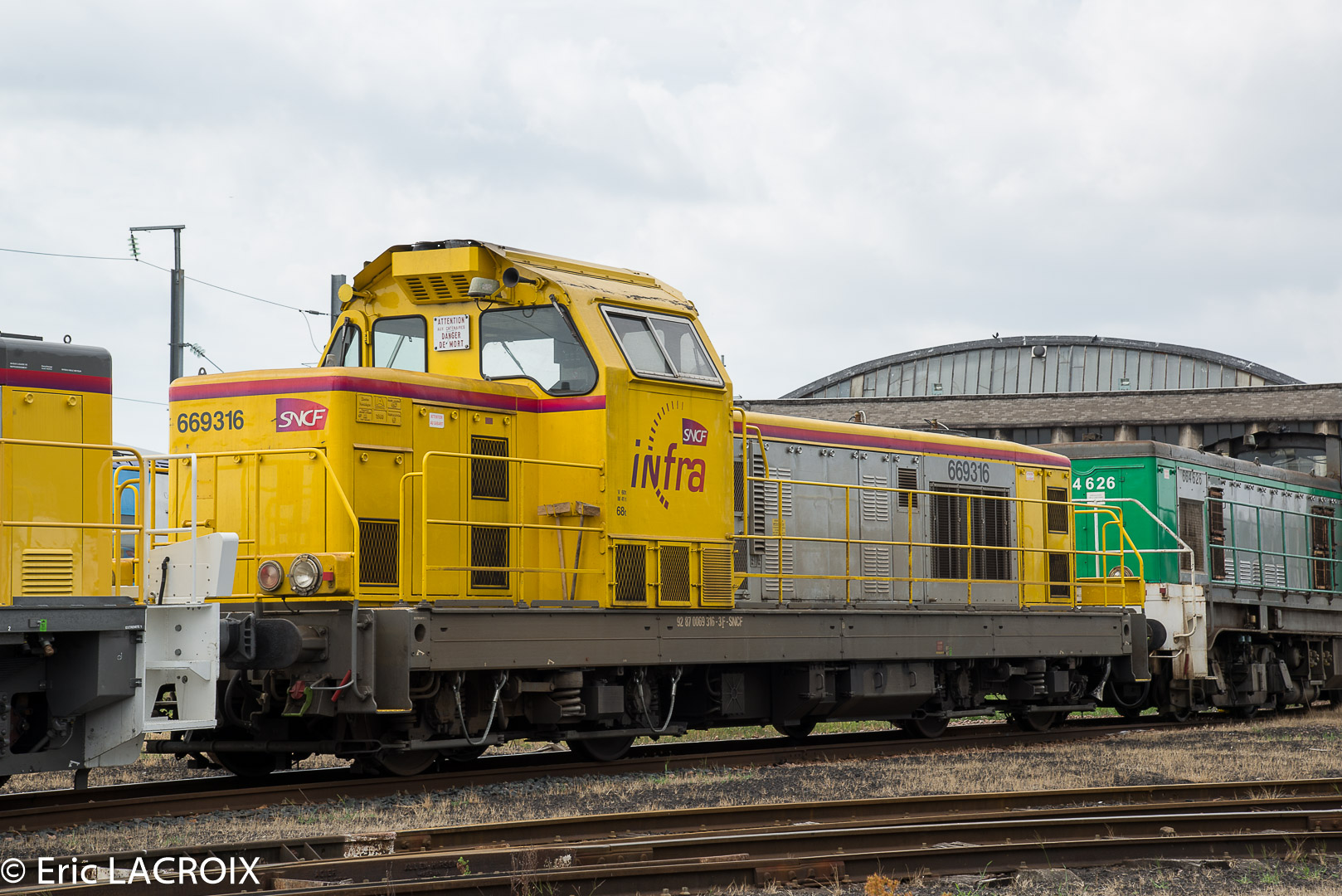 moteur de SPDC il travail entre la gare et les voies du Technicentre SNCF de SPDC pour refouler les automotrices qui