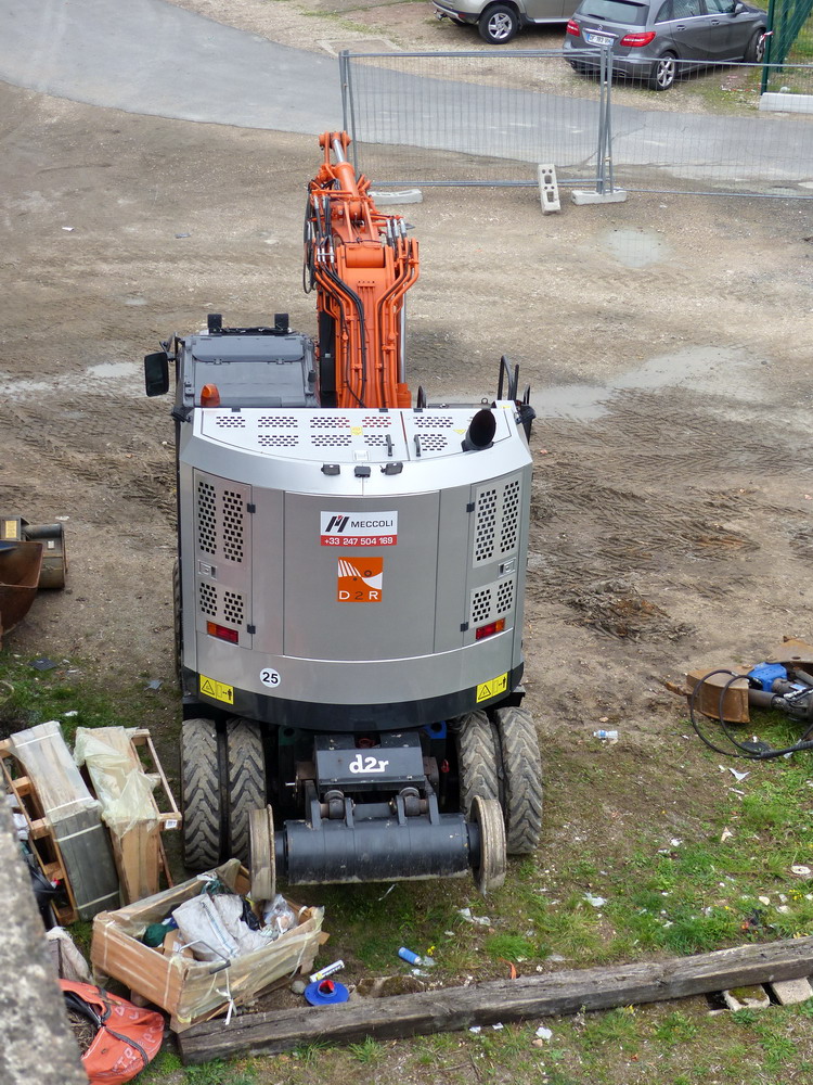sur le chantier de la gare de SPDC (37) avec une autre Pelle Hitachi d2r ZX 170 PRR d'Aquitaine Rail n°1 des photos sur le lien