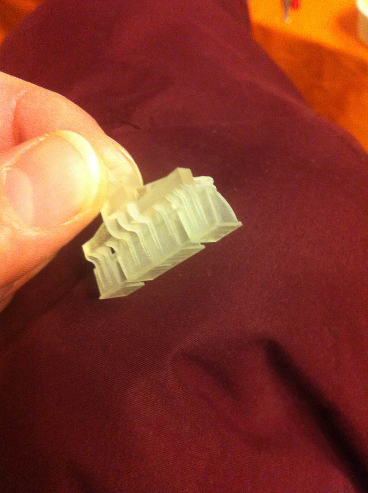 Il faudra dégraisser les pieces pour enlever le produit de traitement qu'utilise shapeways pour la production et qui est très gras. Pour ce faire, il faut simplement nettoyer les pieces a l'eau tiede et du liquide vaiselle, eviter les produits de dégraissage industrielle ou chimique