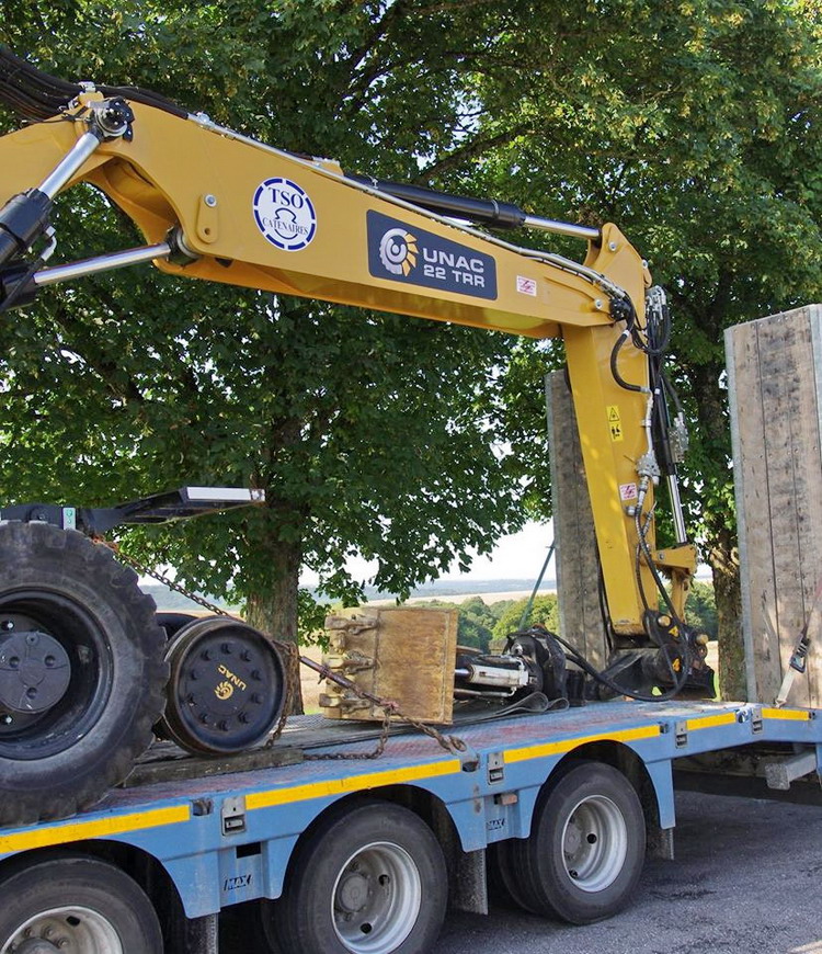 Voici une série de photos sur la Pelle UNAC 22 TRR n° H9A00114 de TSO Caténaires sur un camion