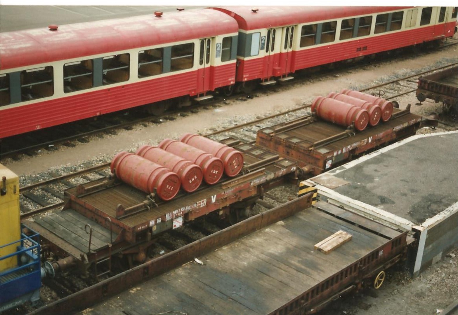 Ces wagons sont utilisés pour le tarage des bascules. Ils sont équipés de 2-3 ou 4 poids de 5000 kg chacun. Ces wagons circulent en groupe de 2 au minimum.