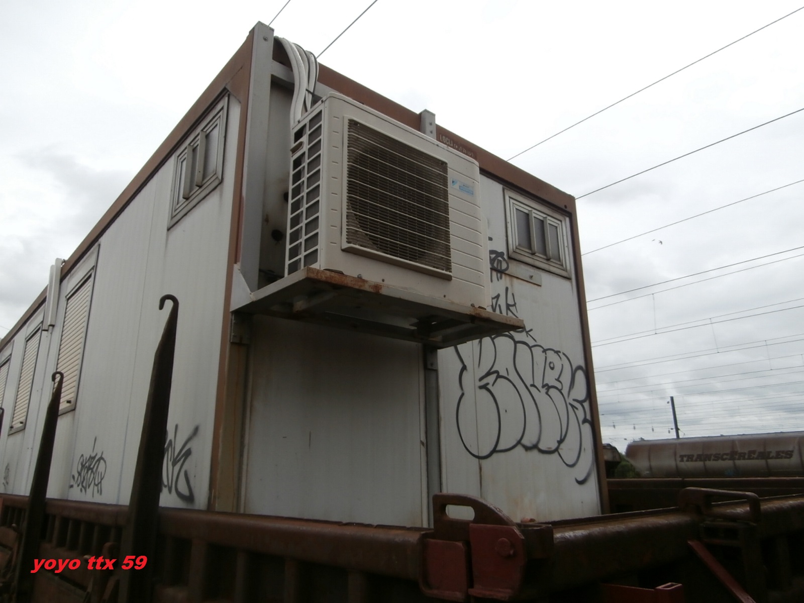 on le retrouve sur la rame d'hébergement atelier du train Parc n°3 en provenance de Laluque (80) du RVB sur le site de Vie SNCF RESEAU de l'Elog National de la gare de Laon pour le RVB Amiens Laon photos du 13 avril 2018 de Gtr Lefèvre