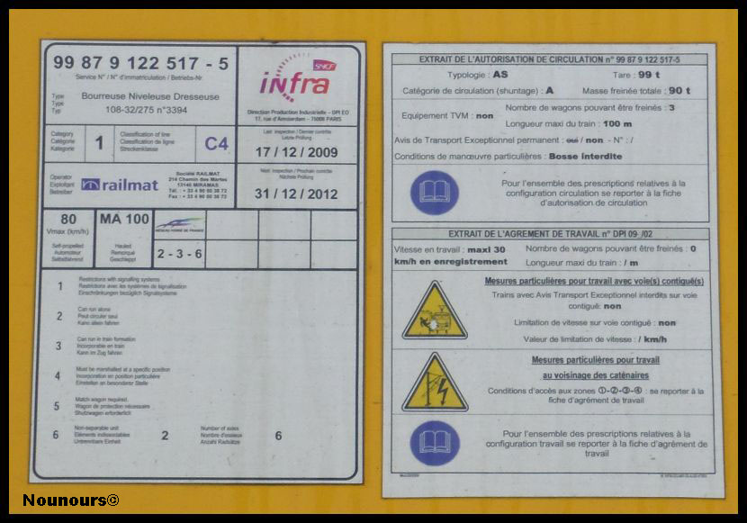 Agrément de travail 25-06-2016 / 27-05-2018 - DPI 09/102 d'une longueur de 33,420m et d'une Tare de 94t