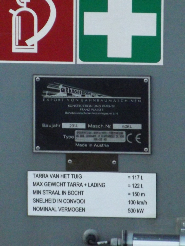 Bourreuse d'appareils 108-32/4S Plasser & Theurer n°6064 de 2014 - Agrément de travail 27-03-2014 / 2017