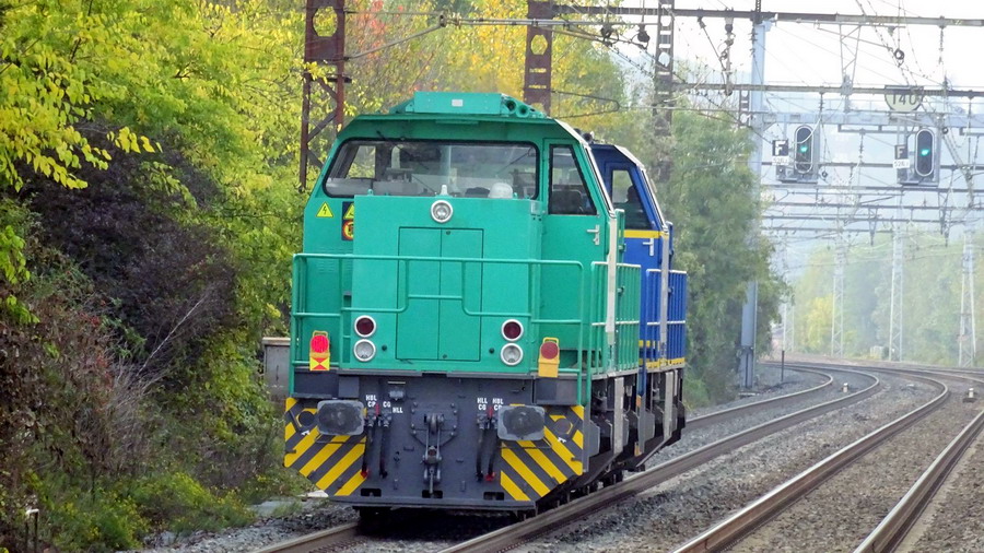 La voici le 03 novembre 2016 à Sérézin-sur-Rhône (69) avec la G 1206 BB 5001726 - 92 80 1276 005-6 D-EVB avec logo "EVB 276 005" en location par Vossloh et sous louer pour Ferrotract