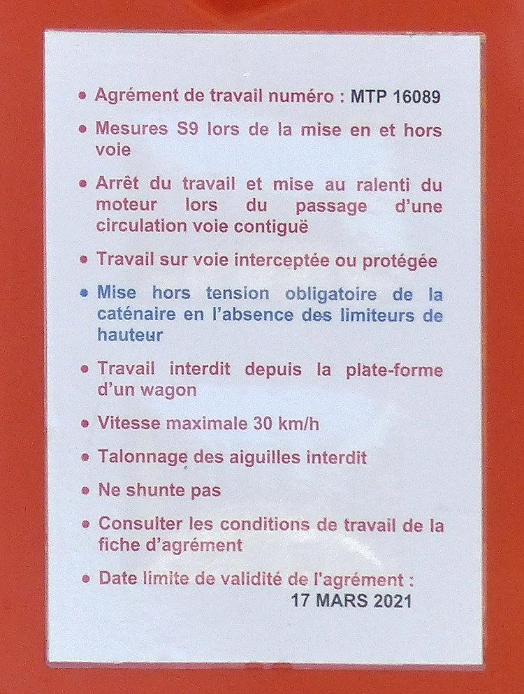 Colas Rail D 100 2304 - Agrément de travail MTP 16 089 - 17-03--2021