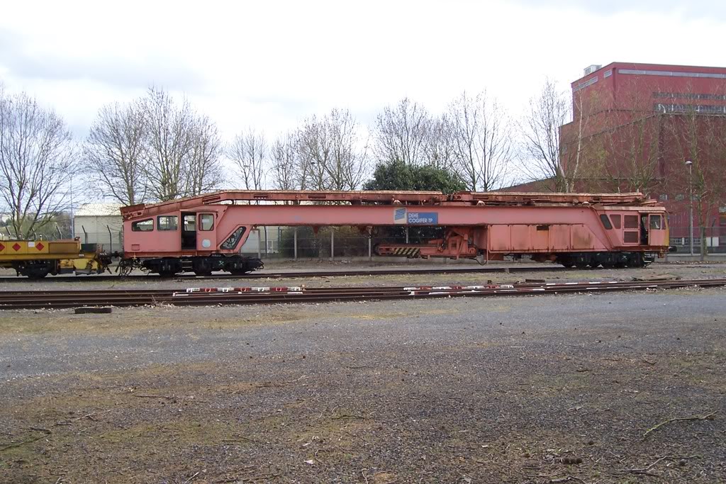 voici les infos tant attendu : il s'agit d'un morceau du TDC 100 ou DS 2000 dégarnisseuse DEHE partie pose construction Plasser refait par DEHE et Spie. Après avoir brûlé la partie énergie, il a fini sa carrière à Berlin.