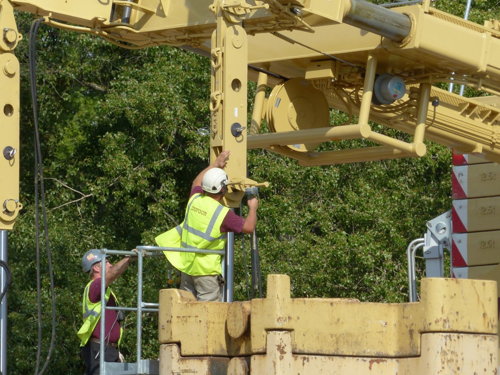 Les travaux ont durés jusqu'à 15h30, puis la grue a commencé à soulever le nouveau tablier.