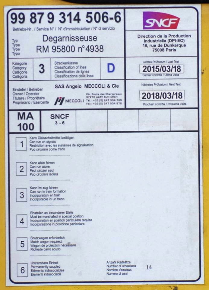 Dégarnisseuse RM 95-800 AHM - 99 87 9 314 506-6 Meccoli (Plasser & Theurer n°4938)