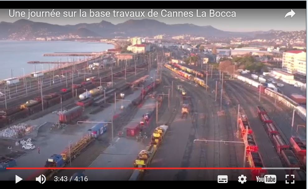 et voici une vidéo sur l’activité de la base travaux de Cannes La Bocca, coulisse du chantier de renouvellement des voies entre Anthéor et Juan les Pins. Le temps d’une journée, suivez les opérations qui s’y déroulent et les hommes à la manœuvre.