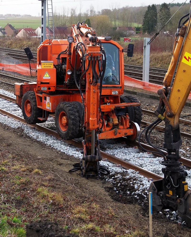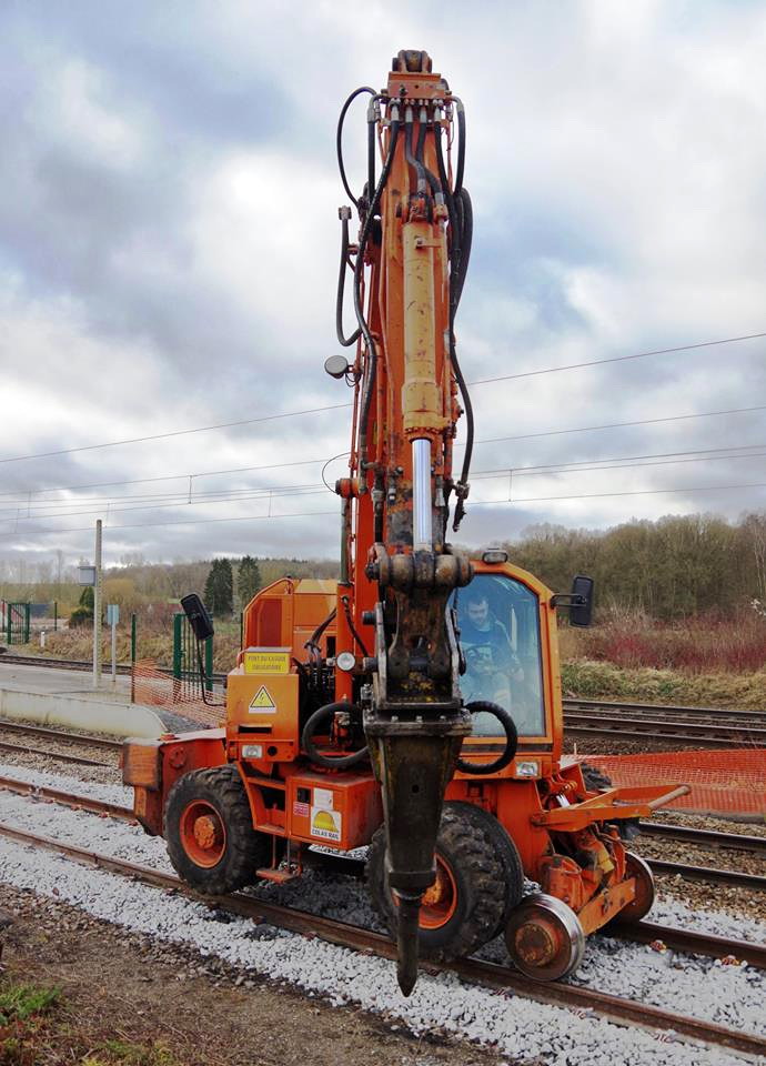 La voici en gare de Mennessis (02) dans le cadre du RVB de la ligne Amiens Tergnier avec la démolition des anciens quais datant