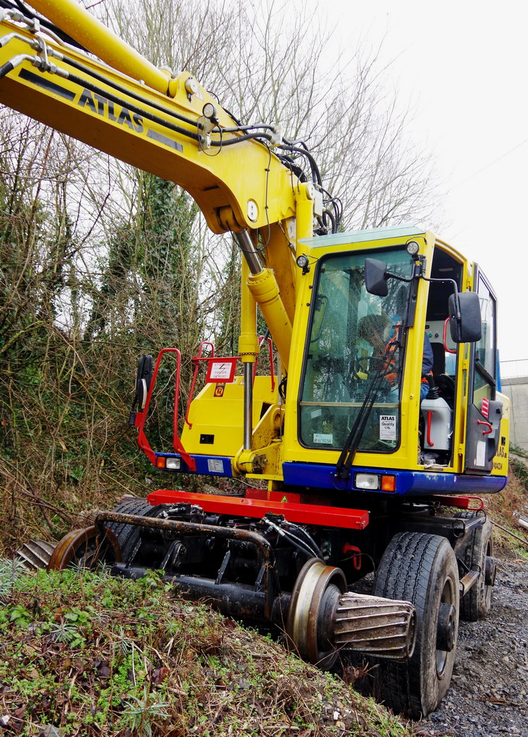 en janvier 2015 achat de la 1ere pelle Rail/Route ATLAS 1404 avec attache rapide par l'entreprise