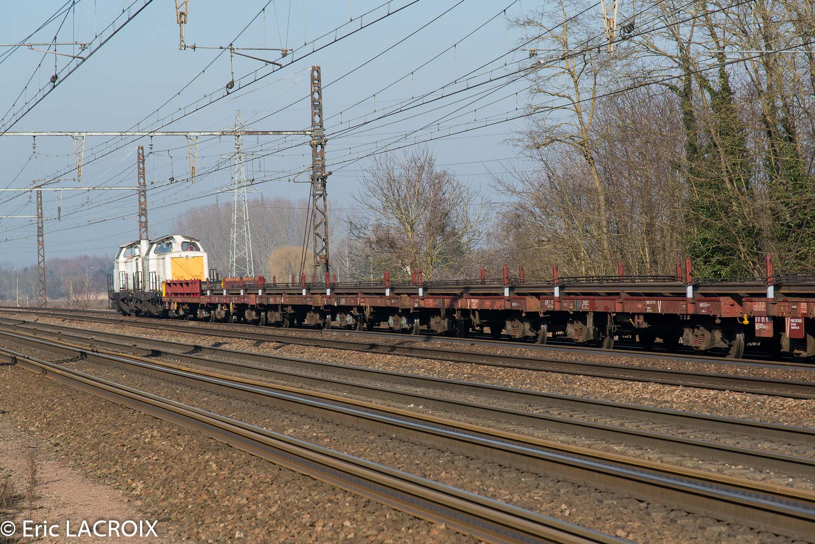 Mise en place des LRS par la G 2000 Ferrotract 92 87 0 002 028-4 F-FRT à Villeneuve la Guyard le 20 mars 2017.