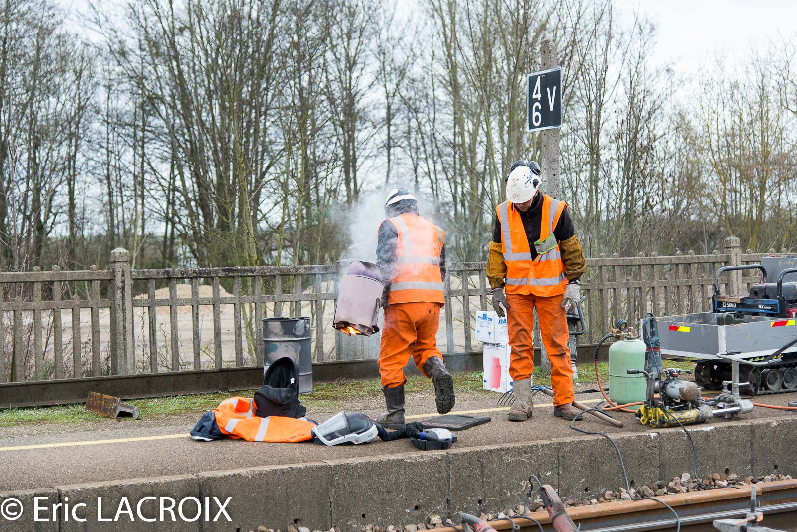 Soudure aluminothermique des rails réalisée par la Société LSF La Soudure Ferroviaire. RVB Villeneuve la Guyard le 20 mars 2017.