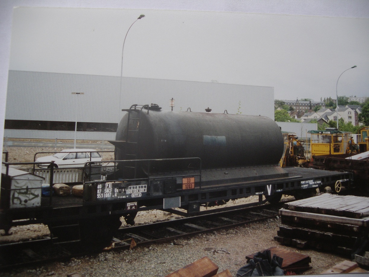 J'ai récupéré quelques photos argentiques, support à la réalisation partielle de cette rame, dont le but était l'intégration du wagon de transport de produits pétroliers, ayant pour point d'attache LE BOURGET (GELEV ?), dont la réalisation a fait l'objet d'un article dans R.M.F. 504 de juillet 2007.