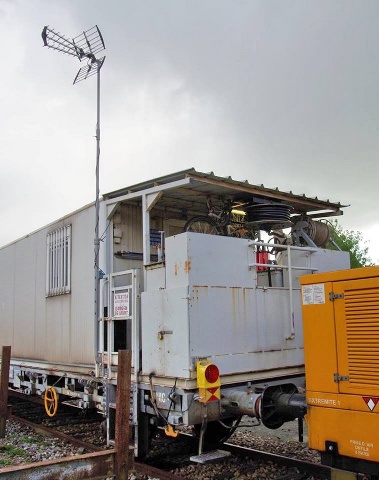 Voici le wagon avec le PVI - 6.152 - 99 87 9 439 003-4 - DRSC - SNCF-RO sur la zone Infra de la gare de Tergnier