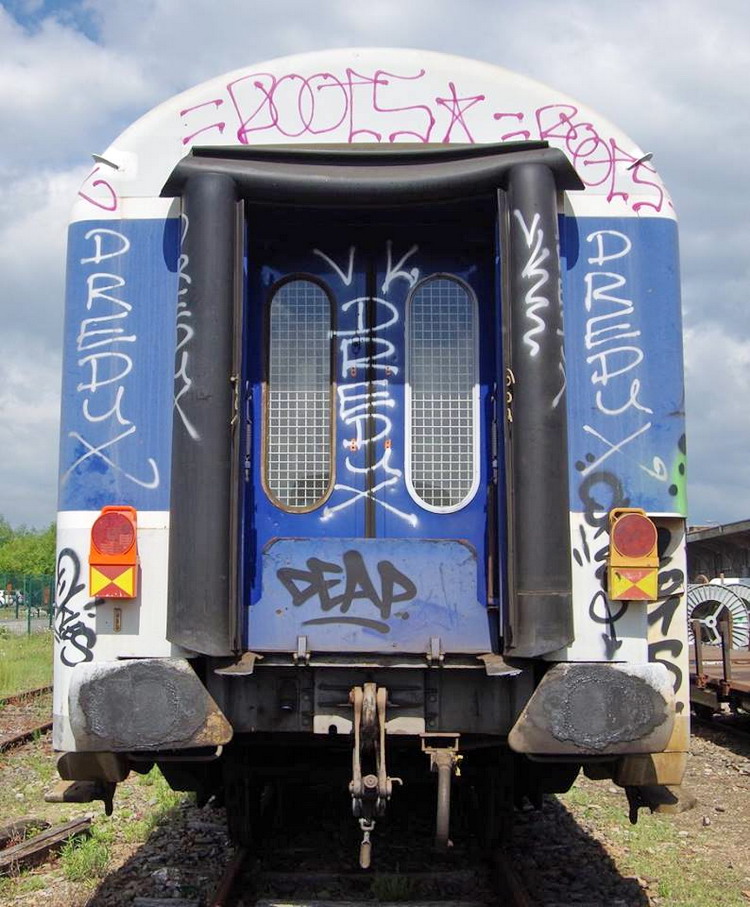 Voici la 80 87 979 0 660-5 Uas H55 0 SNCF-RO - Caen (ex A7D puis B7D) voiture accompagnement du wagon de contrôle des