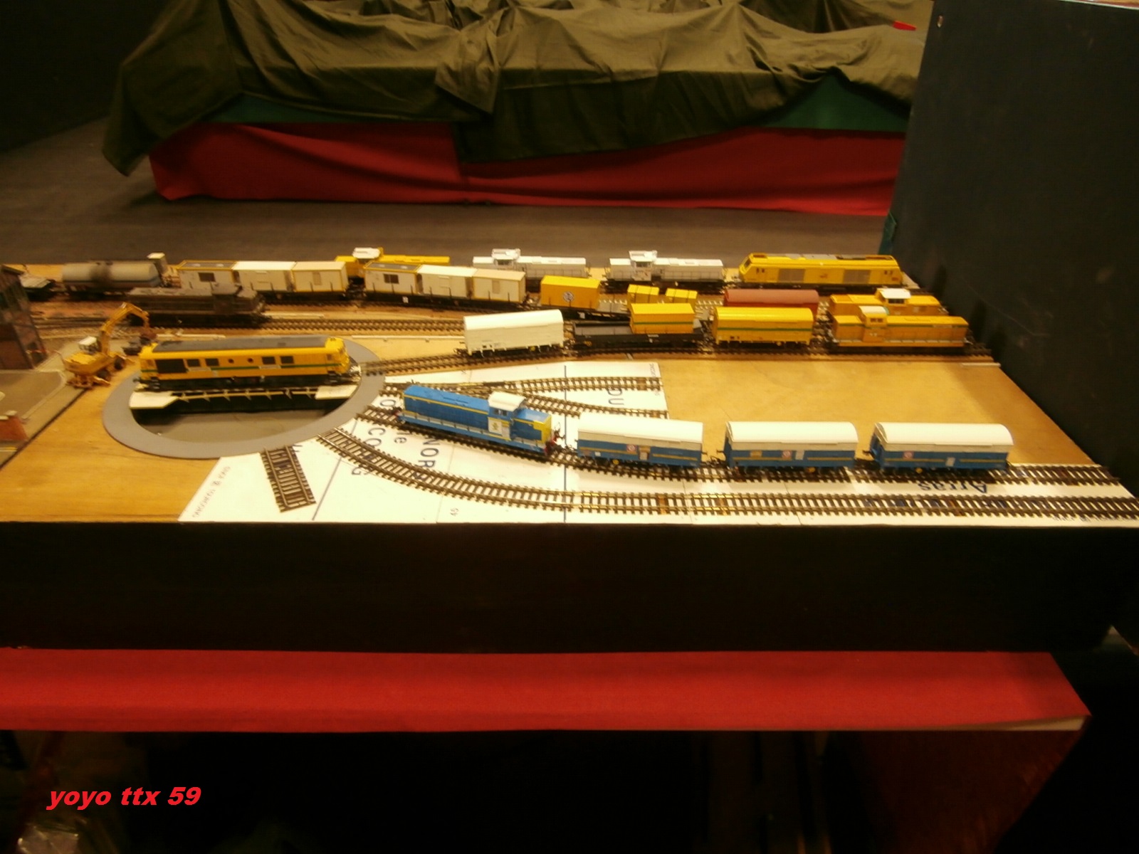 La suite avec l'espace pubs et travail ( démonstration de construction de matériels roulants ) :