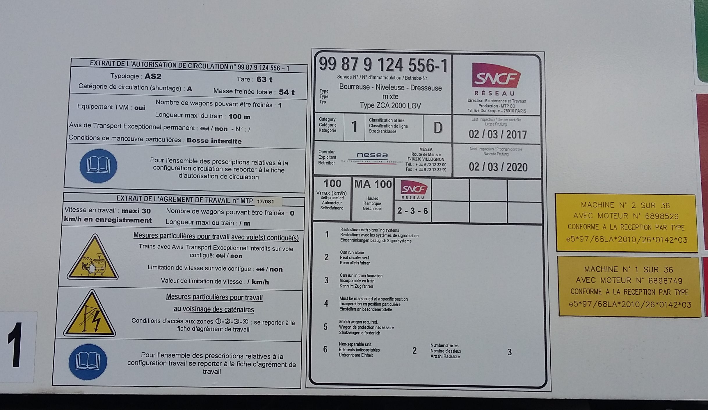 Voici les premières photos de la deuxième ZCA de MESEA. Cette machine est équipée de la presse STRAIT de redressage de rail faussé.