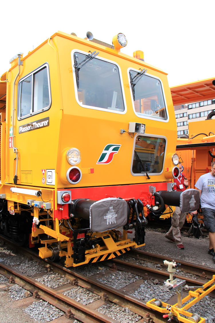 Voici la nouvelle génération de Bourreuse de voies et d'appareils sur le stand de Plasser & Theurer pour l'exposition Ferroviaire IAF Münster 2017 en Allemagne du 30 mai au 01 juin 2017