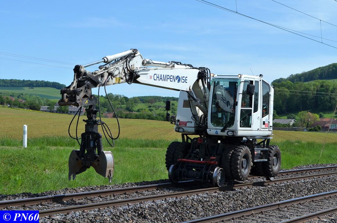 Pour terminer le reportage du 22 mai dernier, voici une pelleteuse rail-route de la société La Champenoise dont j'ignore la marque et le type, ce matériel semble assez récent !
