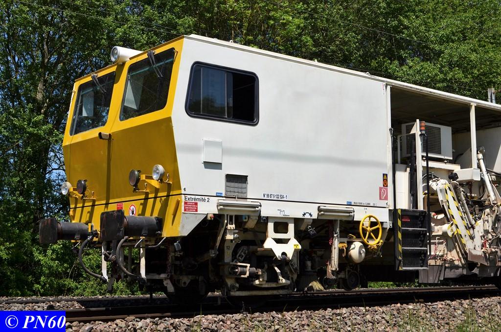 Le 25 mai 2017, vu à Brainville sur Meuse, une bourreuse-niveleuse-dresseuse de voie courante et d'appareil de voie 108-32/275 de la société ETF.