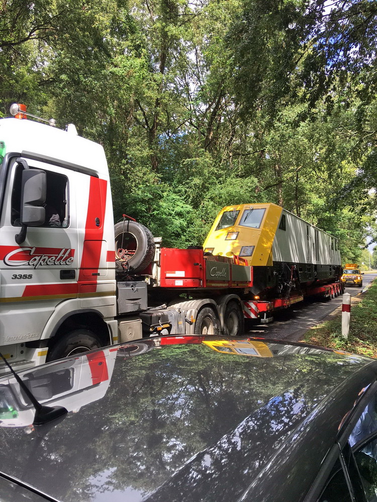 sur une remorque surbaissée télescopique pour l'atelier de la Socofer à Saint Pierre des Corps
