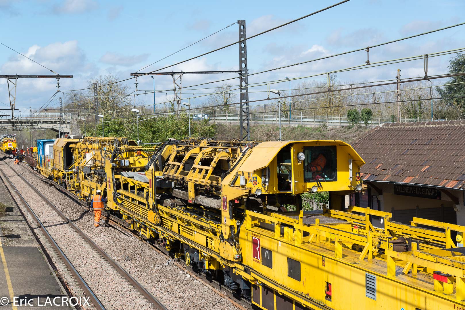 Train de renouvellement P95 MATISA Transalp Renouvellement à Villeneuve la Guyard le 22 mars 2017