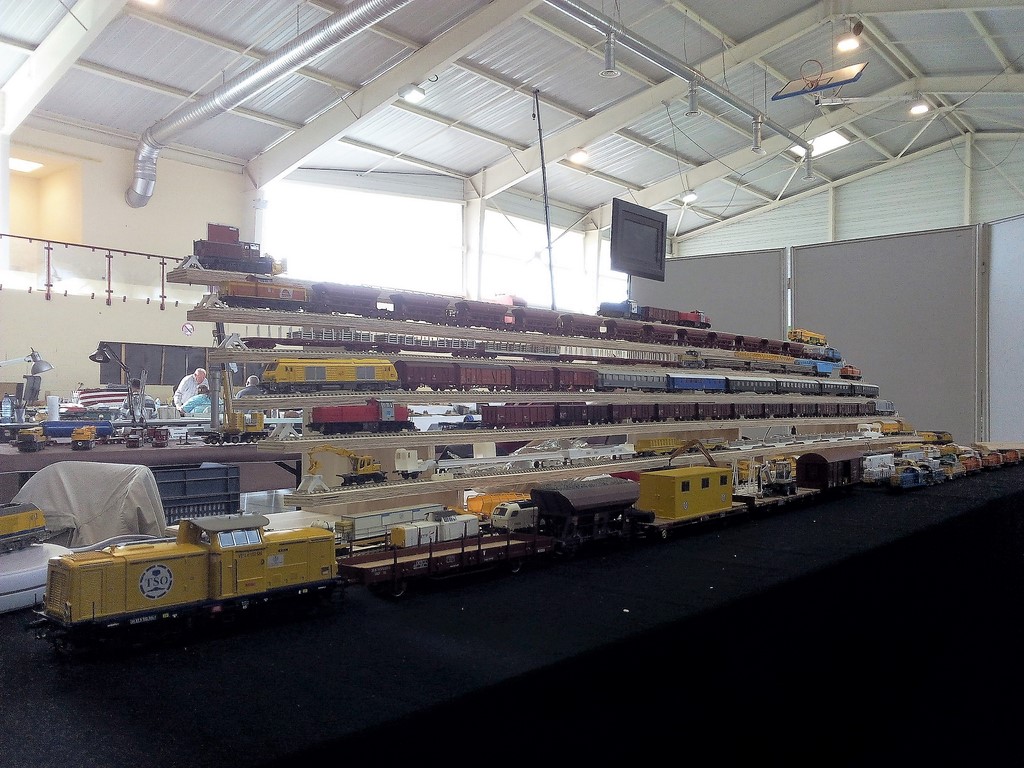 Lors de cette exposition j'ai eu la surprise de découvrir dès le samedi soir la présence d'un stand d'un membre du forum, à savoir Guillaume "ttxdudu90" avec lequel j'ai sympathisé. D'un commun accord j'ai exposé sur son stand le dimanche après-midi mon train de travaux TSO à l'échelle Zéro. Nous avons passé un bon weekend de convivialité et bien sur parlé des trains de travaux. Voici quelques photos du stand en question.