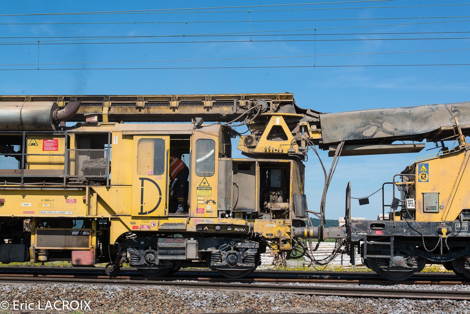 R90 - 80 87 9 383 503-9 - Colas Rail dans train de coupe TSV 21 GP - 99 87 9 311 502-8 - Gipérail sur le RVB ligne 15 à Soulosse le 7 août 2017.