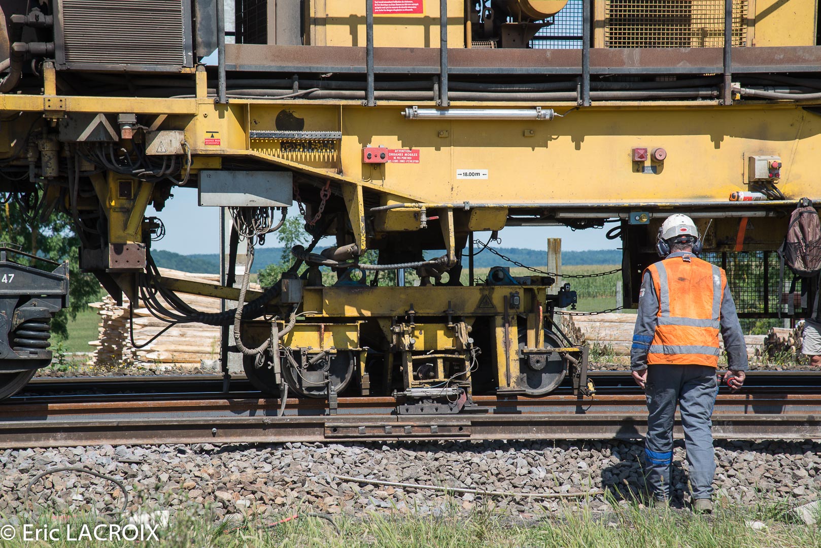 Un LAM UNAC N+ 16 se prépare à suivre le train de dégarnissage pour le contrôle de la caténaire.