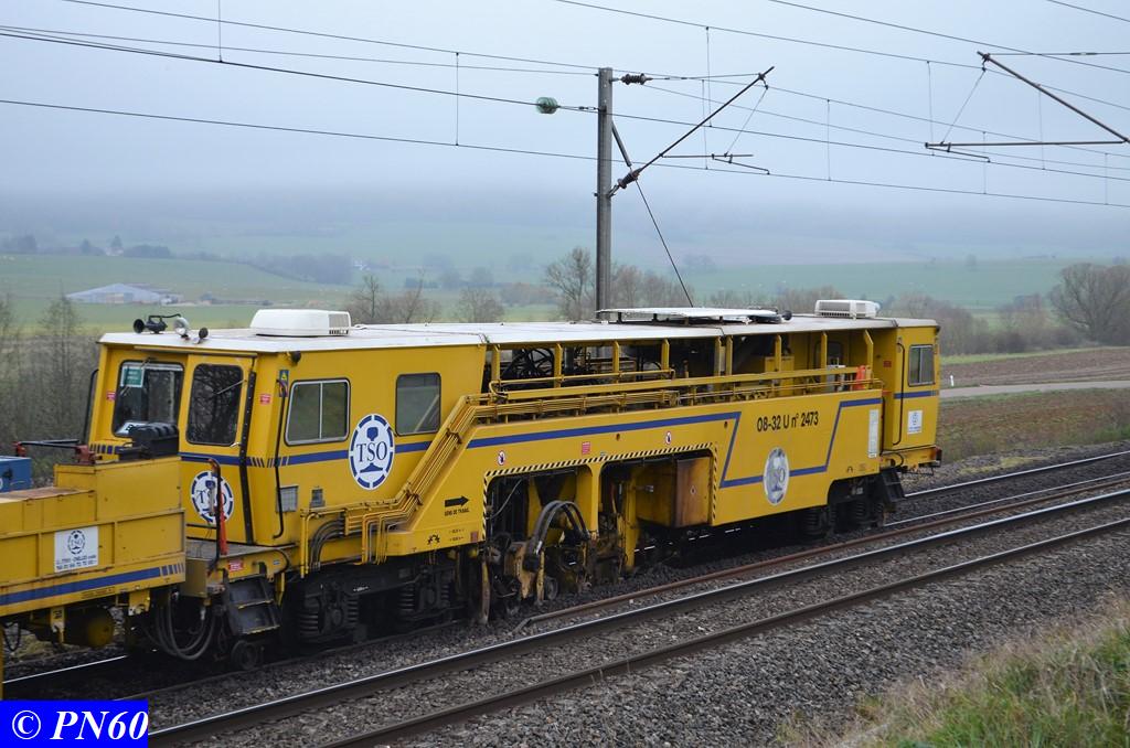 Nous arrivons au niveau de la bourreuse de ligne TSO type 08-32 U n° 99 87 9 122 512-6 2473 en action sur la voie.