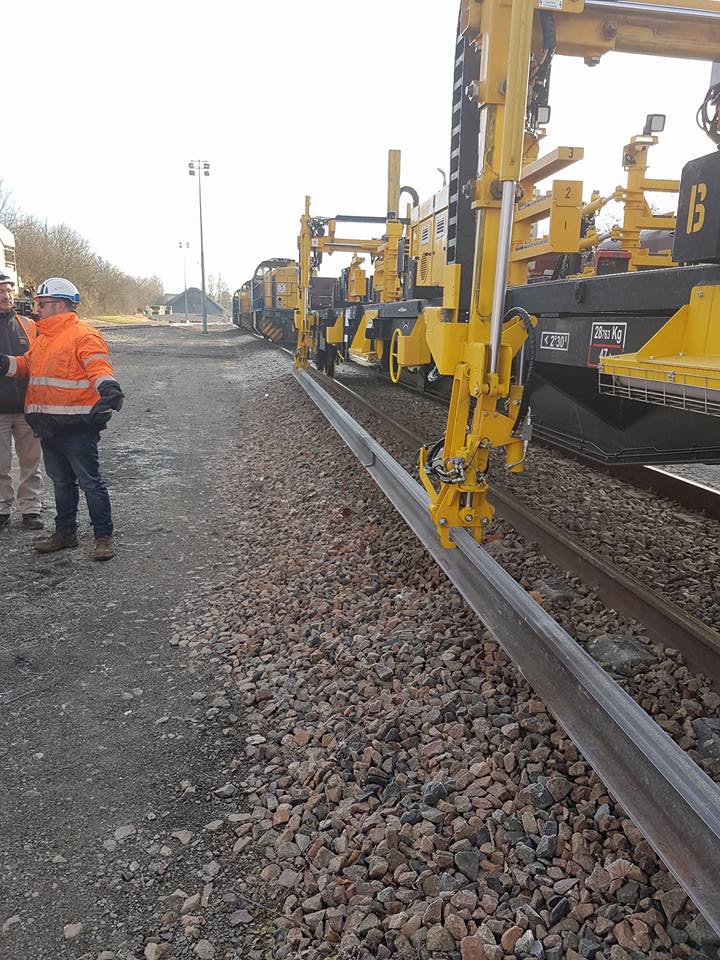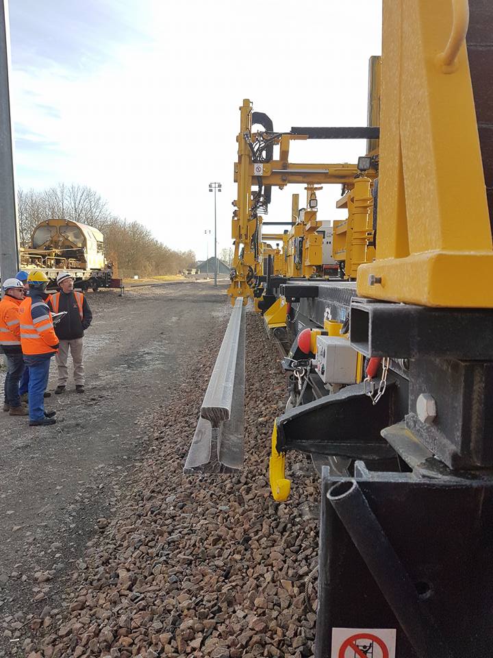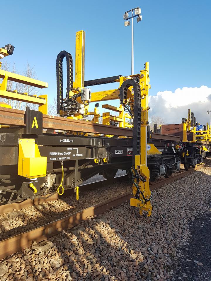 Voici un nouveau wagon de déchargement et de chargement de rails pour TSO en démonstration le 13 décembre 2017
