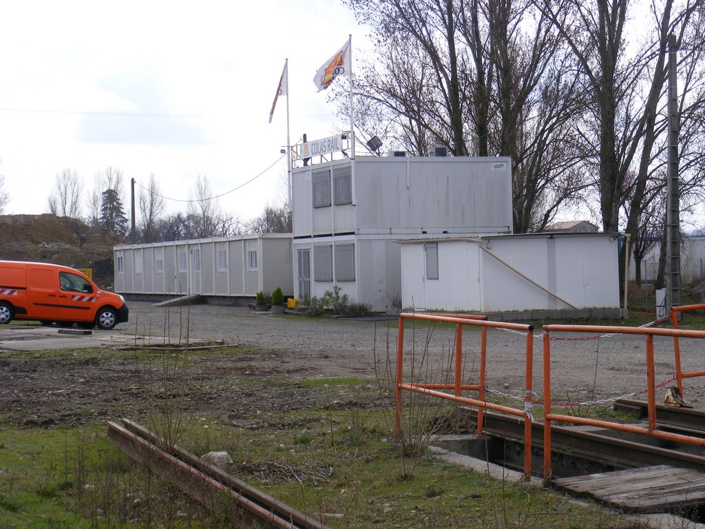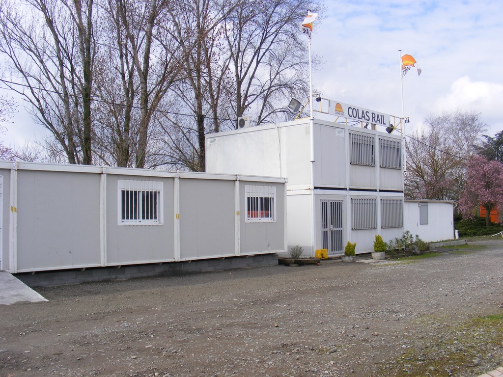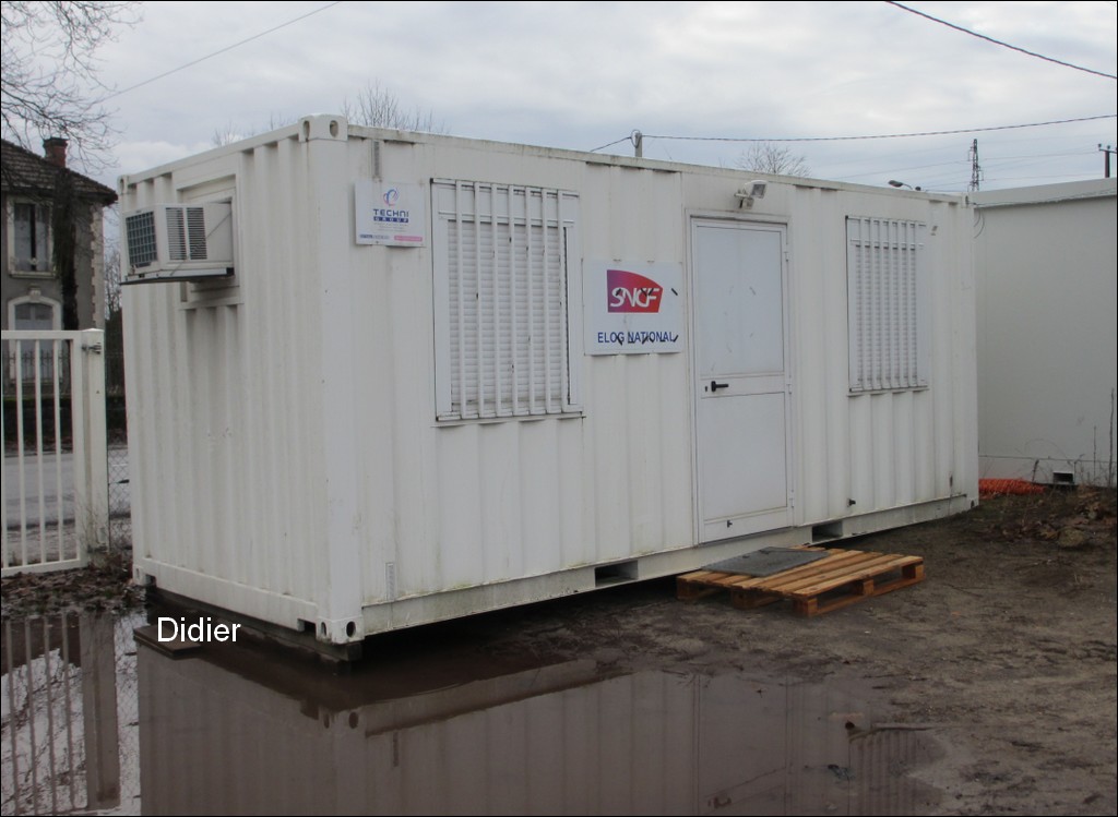 Petite précision : je ne recherche pas des photos de ce type de bungalows sur wagons, mais plutôt installés à poste fixe en tant que bureaux sur des bases de travaux.