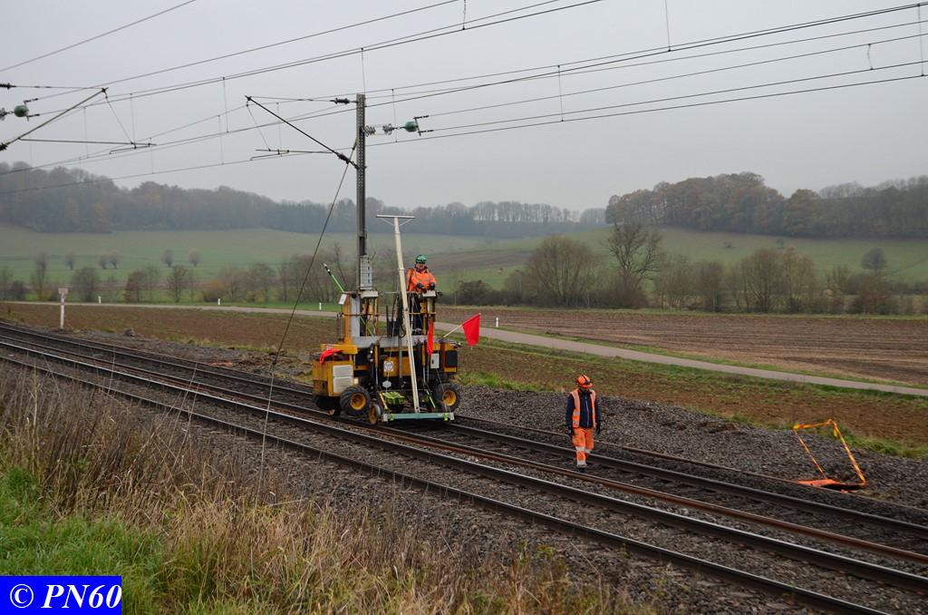 Selon les explications données par un internaute, Il s'agit dune des bourreuses qui effectuent le relevage de la voie ( 70 mm maxi), et les ouvriers vérifient la position de la voie et son dévers, ainsi que de la caténaire, et éventuellement adaptent cette dernière.